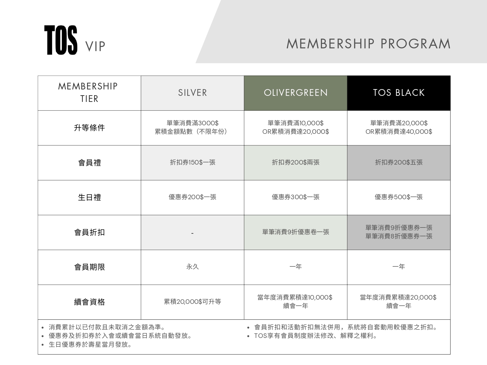為您介紹 TOS 會員等級計劃